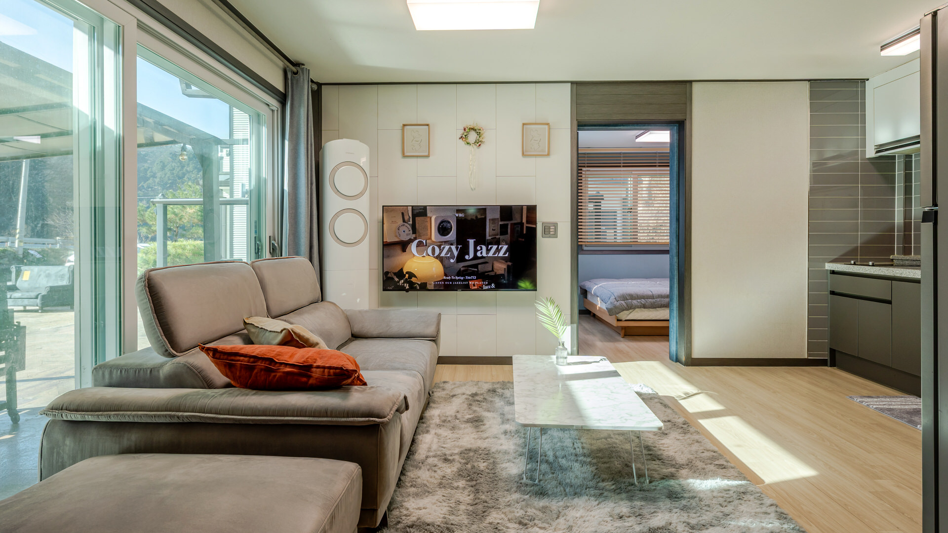 - 집기품목 : 욕실용품, 남녀공용, TV, 금연, 냉장고, 에어컨, 전기밥솥, 취사시설/도구, 와이파이, 식탁, 전자레인지, 커피포트, 드라이기, 샴푸, 린스, 바디워시, 비누, 치약, 타월, 개별바비큐, 산전망