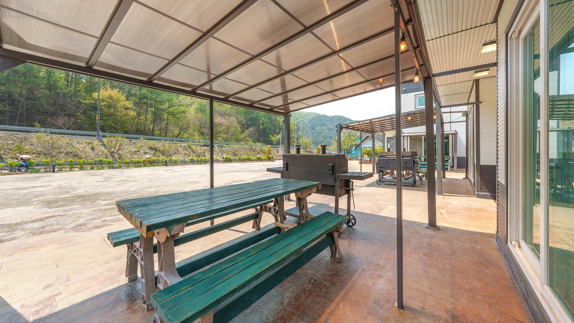 - 집기품목 : 욕실용품, 남녀공용, TV, 금연, 냉장고, 에어컨, 전기밥솥, 취사시설/도구, 와이파이, 식탁, 전자레인지, 커피포트, 드라이기, 샴푸, 린스, 바디워시, 비누, 치약, 타월, 개별바비큐, 산전망